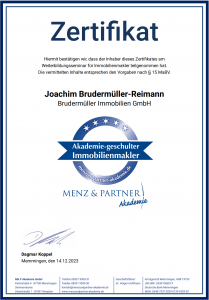 Zertifikat Immobilienmakler M&P Akademie